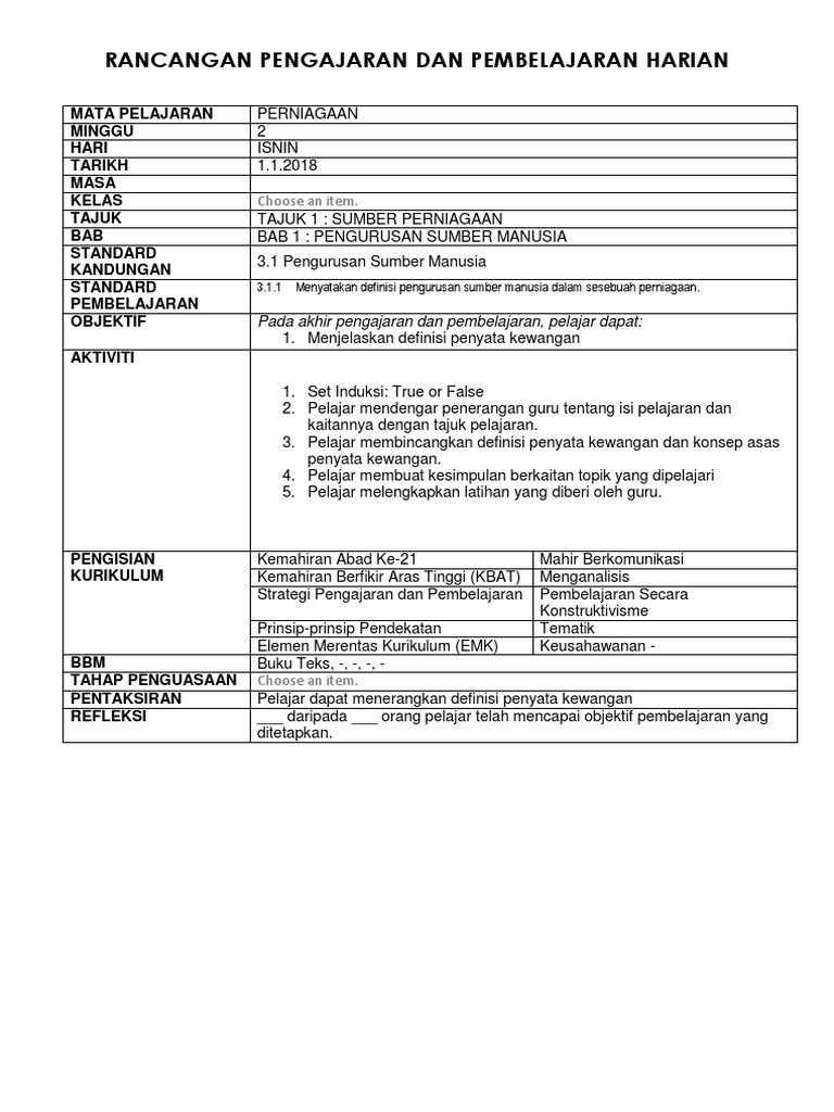 Dapatkan RANCANGAN PENGAJARAN HARIAN SETAHUN untuk kesemua subjek Sekolah Rendah dan Sekolah Menengah dengan harga yang berpatutan. Produk-produk yang dihasilkannya telah dimodenkan untuk. RPT Perniagaan KBSM Tingkatan 5 2019 adalah dokumen secara ringkas isi pengajaran dan pelan proses mengajar PP secara bertulis berdasarkan Dokumen Standard Kurikulum dan Pentaksiran DSKP yang dikeluarkan oleh Kementerian Pelajaran Malaysia.